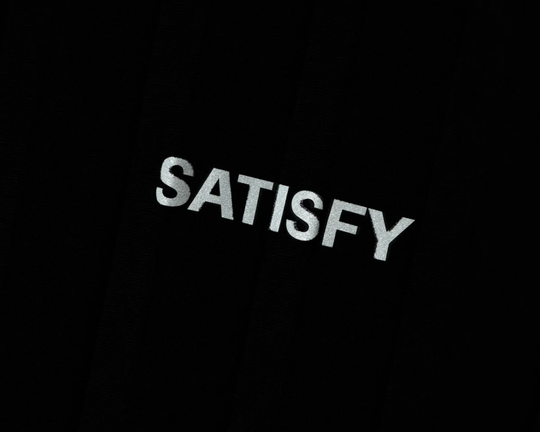 Reflective SATISFY logo, centered.