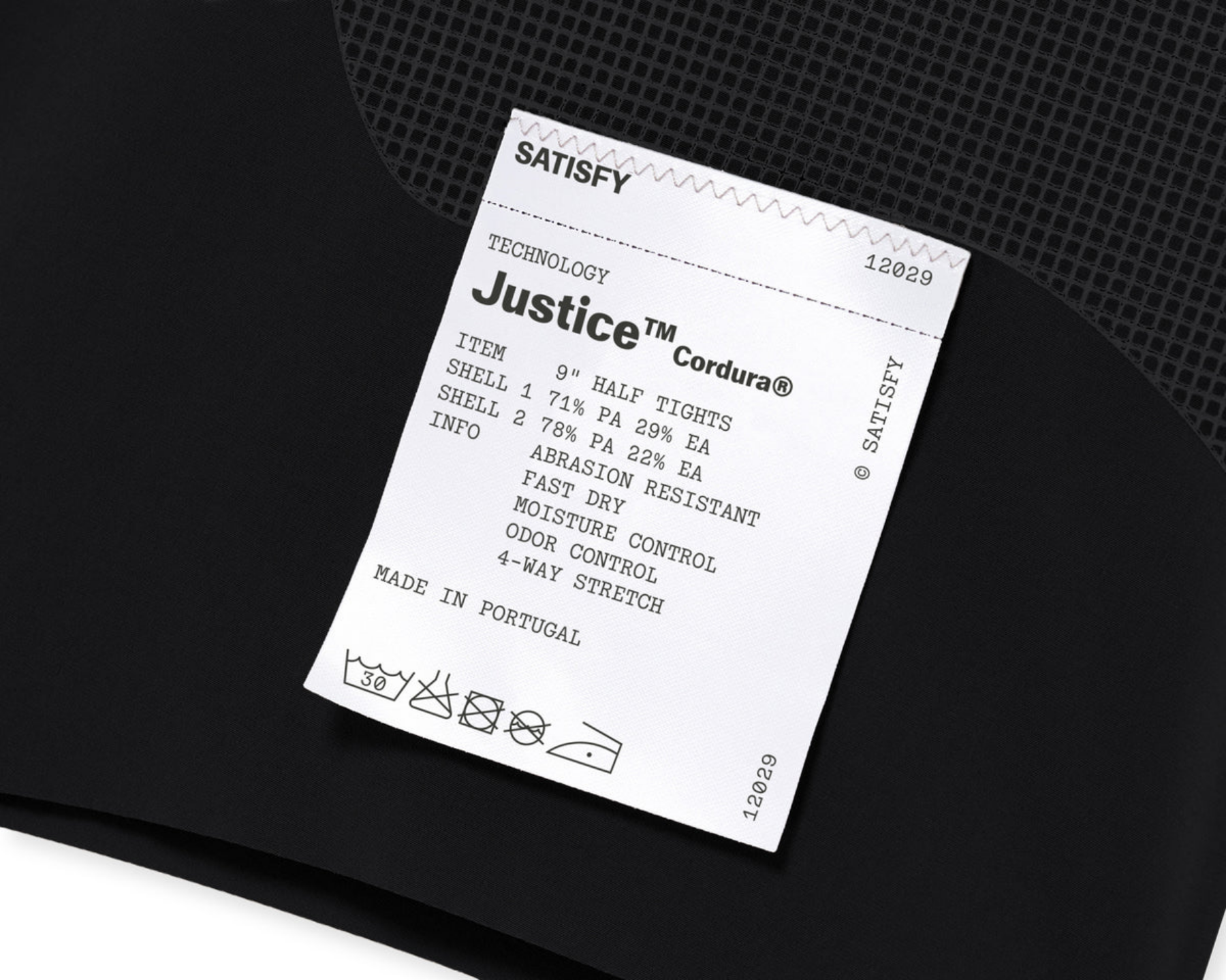 Justice™ is the silk-soft technical fabric Satisfy wears everywhere — woven in France at a mill founded in 1839, tuned for 4-way stretch and fast-dry. The Cargo 9" Half Tights strap cargo pockets to your hamstrings. The Cordura 9" and Trail Tights reinforce the panels with Cordura® where poles, packs, and bushes hit. Built for runners who carry everything and still want to move clean. The Justice™ Cordura® 9" Half Tights reinforce the silk-soft cargo platform with Cordura® at impact zones — trail-ready half-tight with mapped pocket system and zippered security pocket.