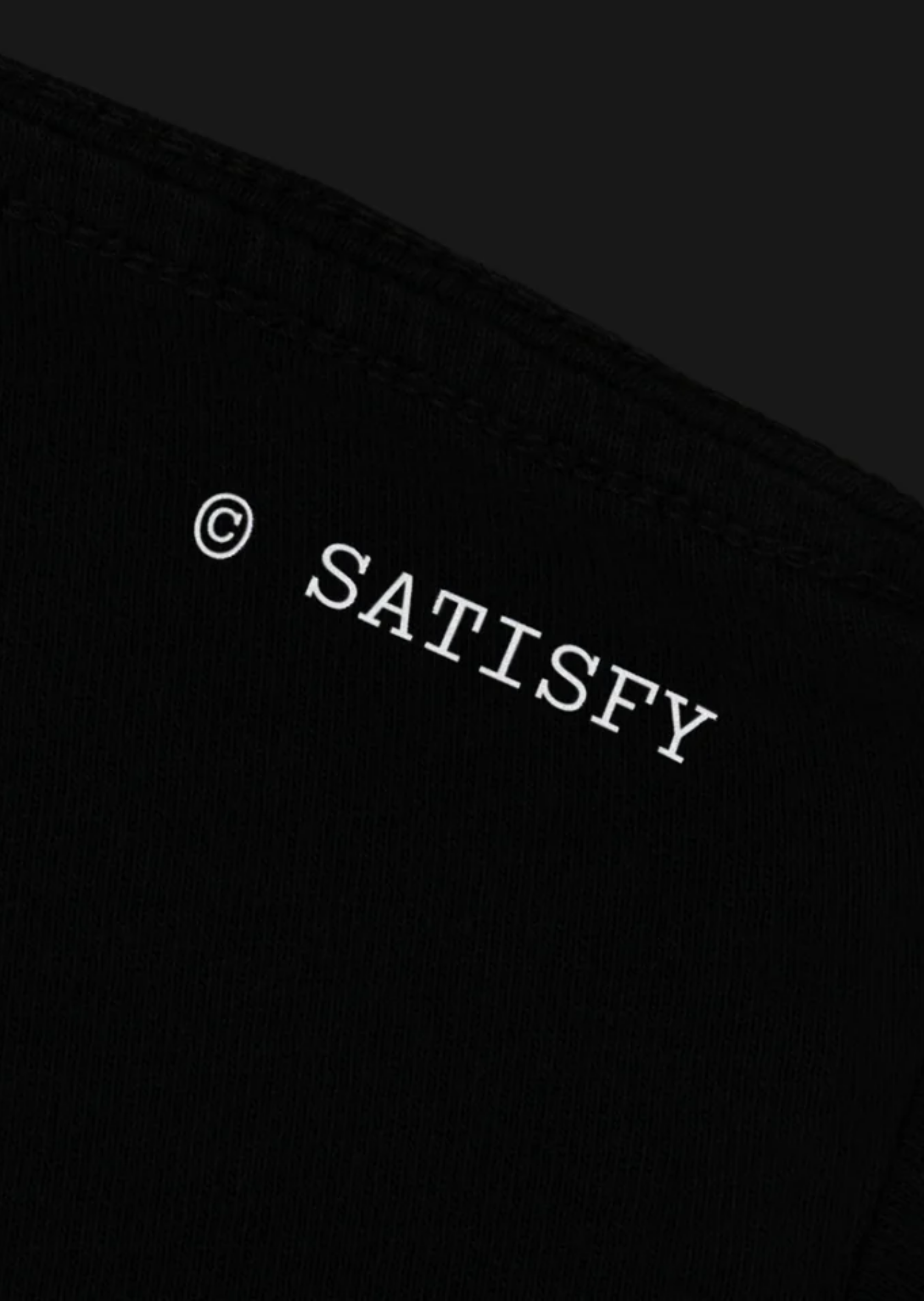 Stealth-reflective ©SATISFY logo, for catching light in the dark.