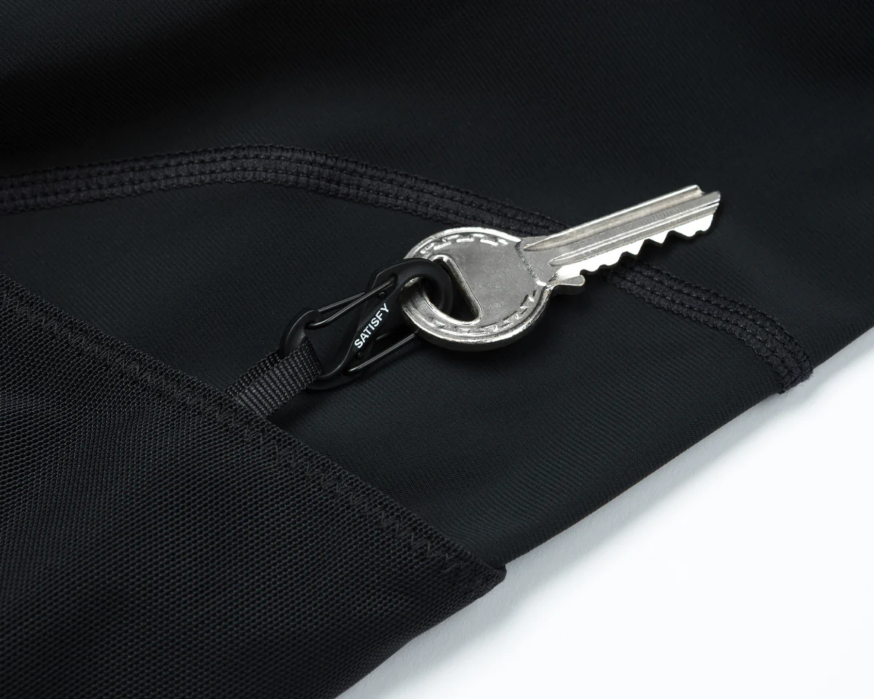 Left-side pocket with an integrated mini S-Carabiner to tether what matters most.