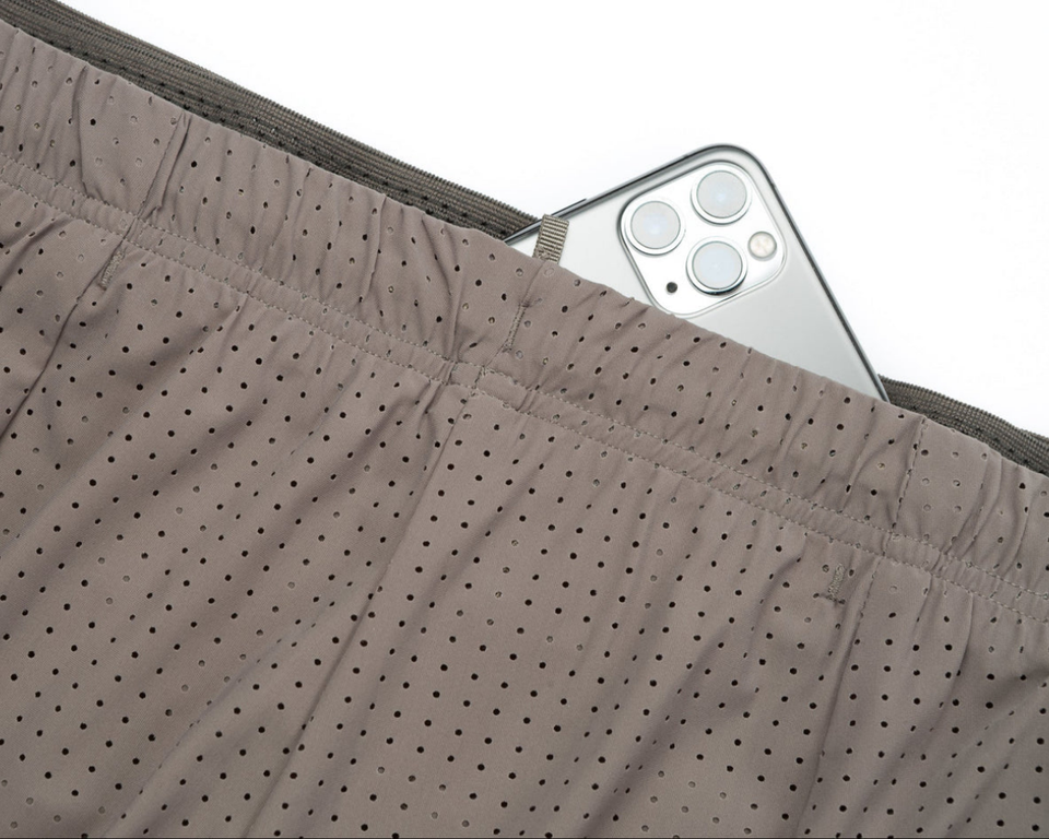 A sweatproof phone pocket, hidden in the waistband. For keeping essentials close, and distractions at a distance.