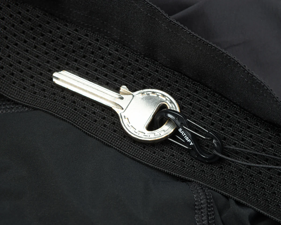 Double waistband construction. Drawcords tuck inside to eliminate friction. With a mini S-Carabiner to tether what matters most.